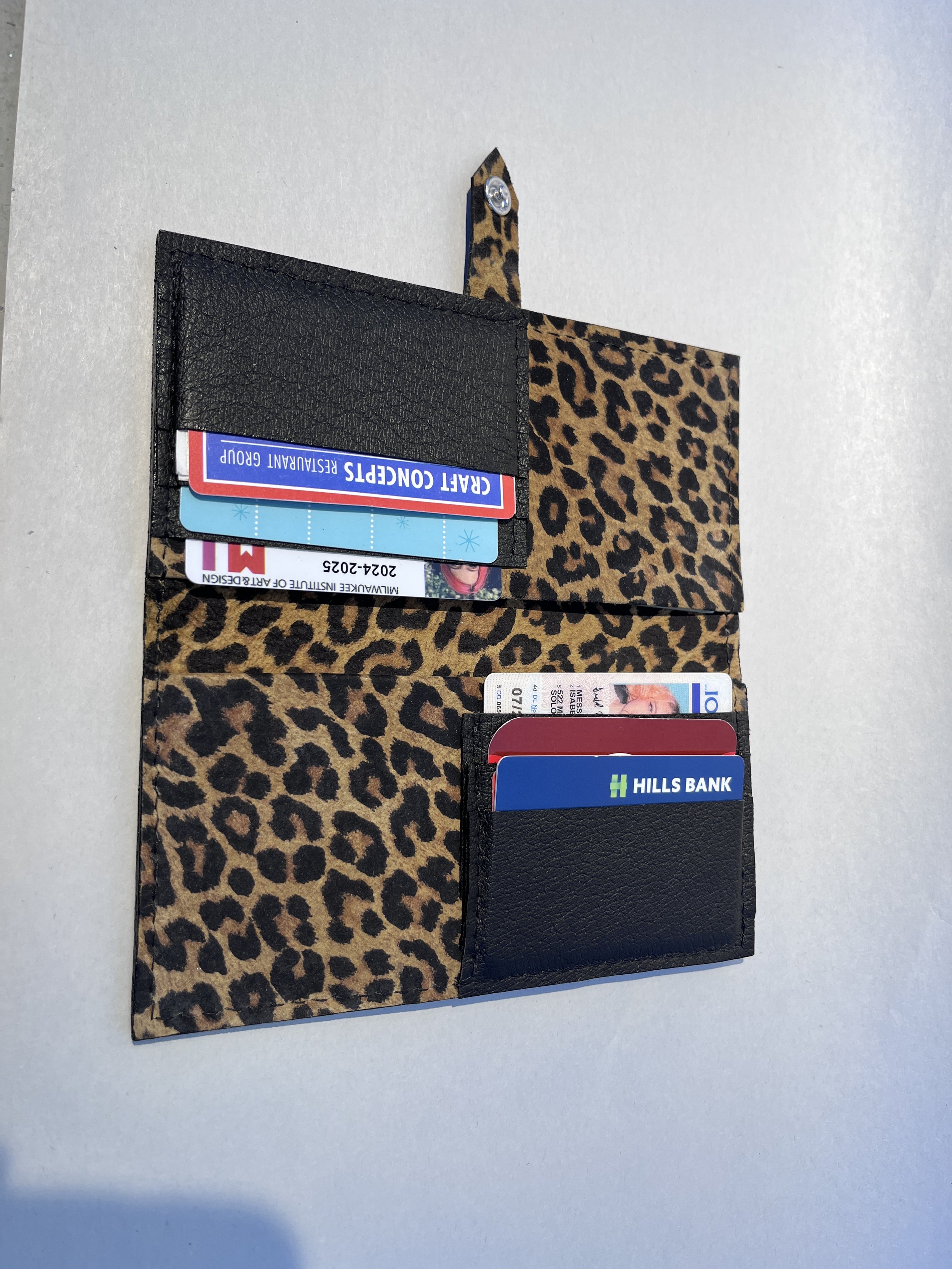 For this project we had to create a wallet that served our own specific needs. I didn’t have anything against my old wallet except for the fact that it was cheaply made and got dirty easily. I made the long type of wallet because I hate when my money folds. I only have six card slots because I really don’t carry that much cash around. The leopard print lining just adds a fun design element that I truly love a lot.